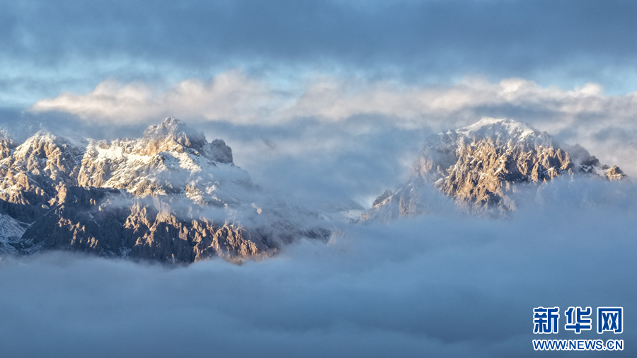航拍云海里的祁连山。